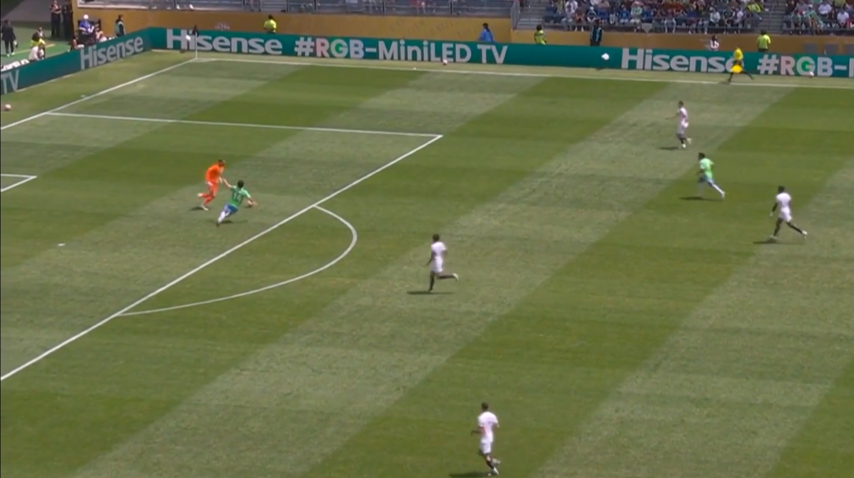 这场比赛的第35分钟,大巴黎打破比赛僵局,维蒂尼亚禁区外插上劲射,皮球击中克瓦拉茨赫利亚后变线入网,最终这球判定为克瓦拉茨赫利亚的进球,这粒进球是本届世俱杯的第100个进球,迎来里程碑时刻。